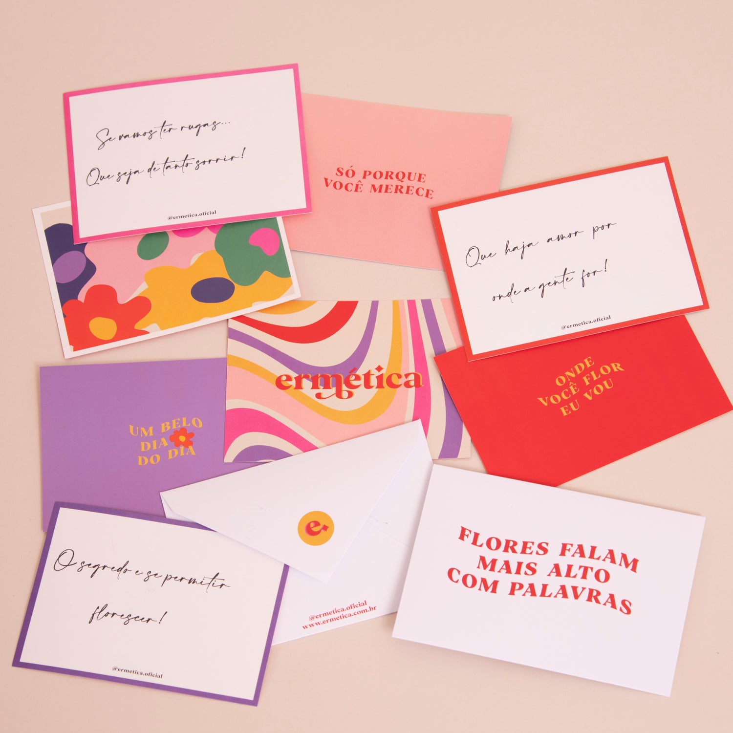 E para finalizar, você escolhe o seu cartão favorito, e a gente imprime sua mensagem nele.