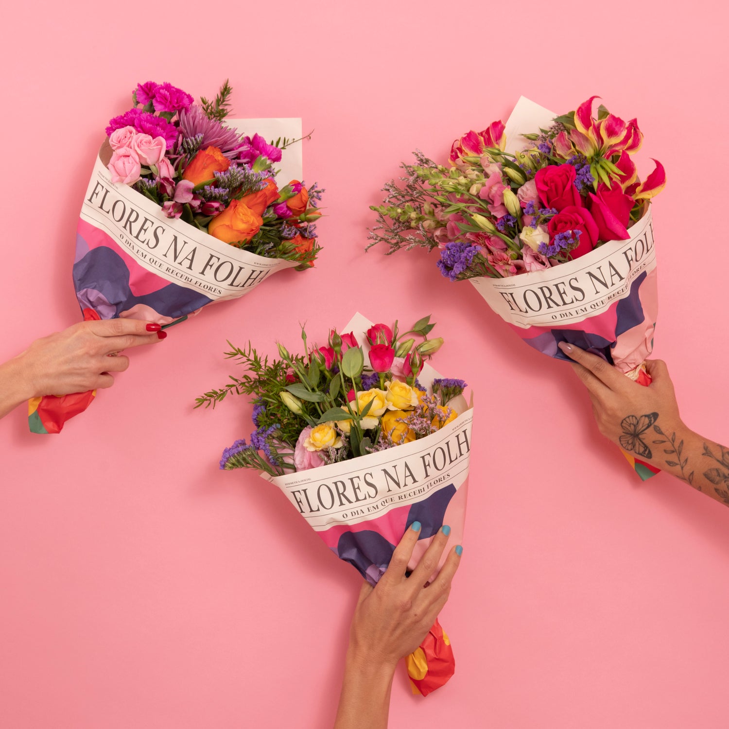 Meus buquês são embalados na minha própria folha de jornal: FLORES NA FOLHA. E o melhor? Só trago boas notícias!
